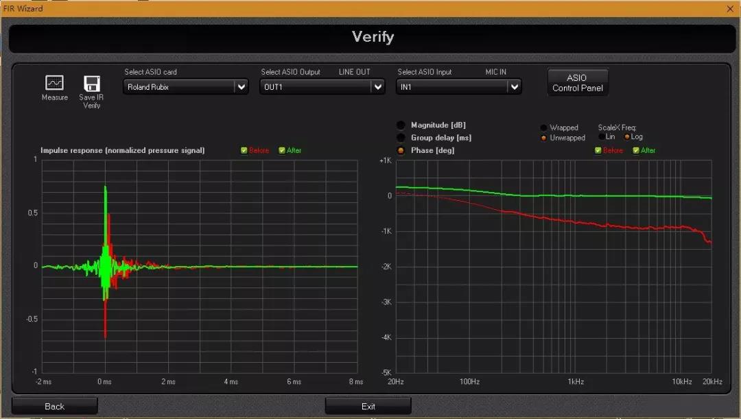 Because there are some differences between the X/Y axis scale of FIR Wizard curve and Smart software, we use Smaart software to measure and verify again, and make comparison before and after optimization, which is convenient for observation.
