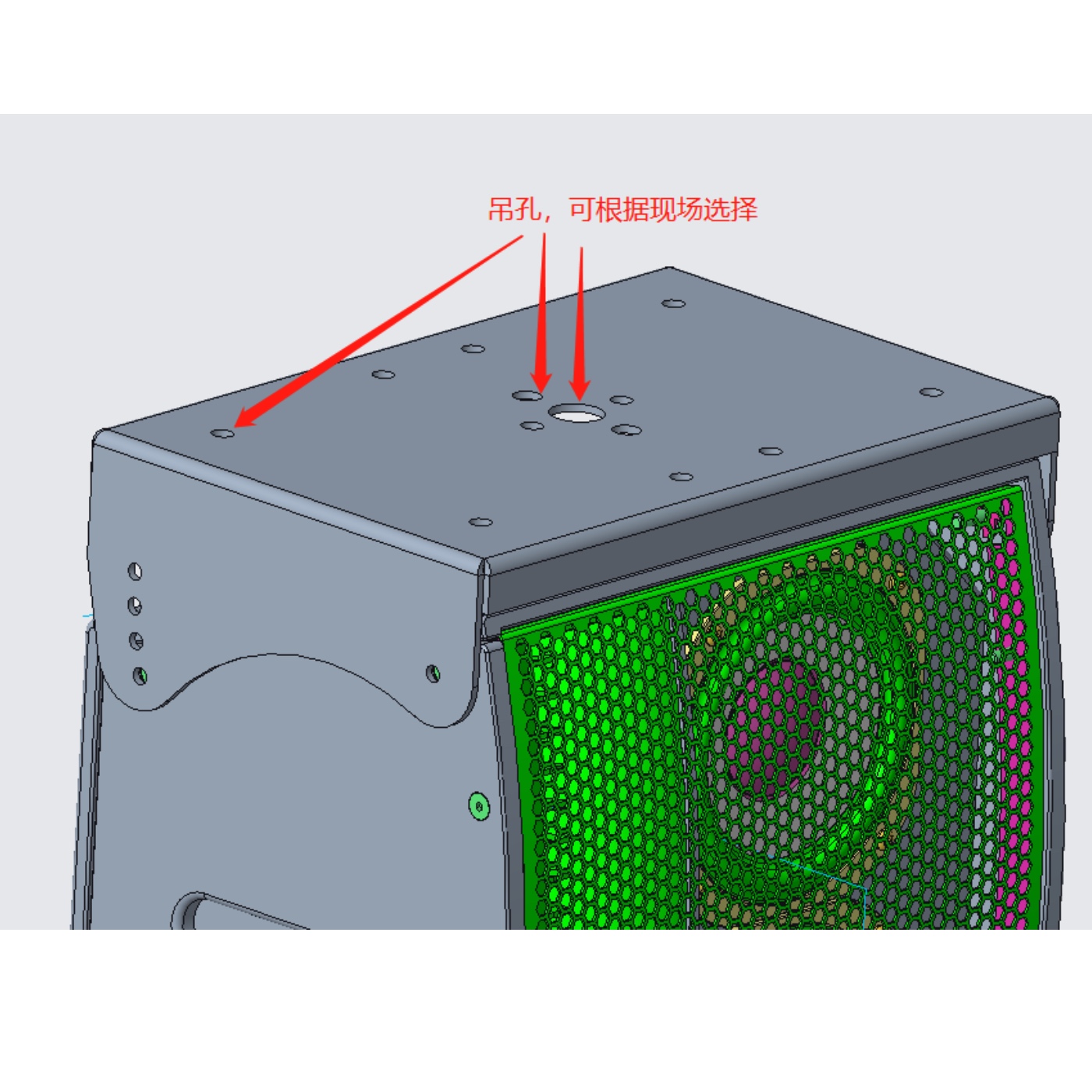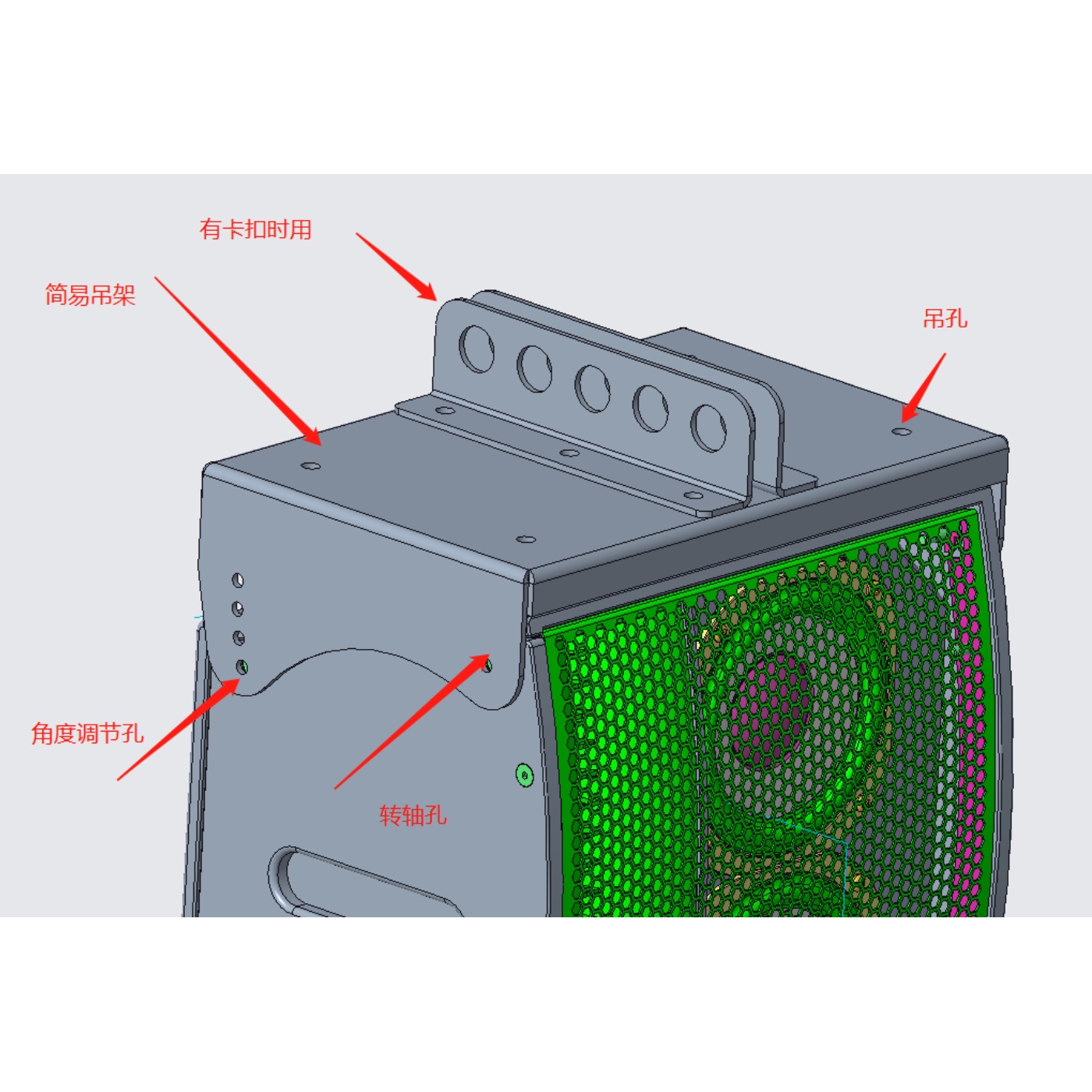 吊掛: 四點(diǎn)式吊掛,垂直0°,5°,10°,15°,20°,25°,30° 可調(diào)
