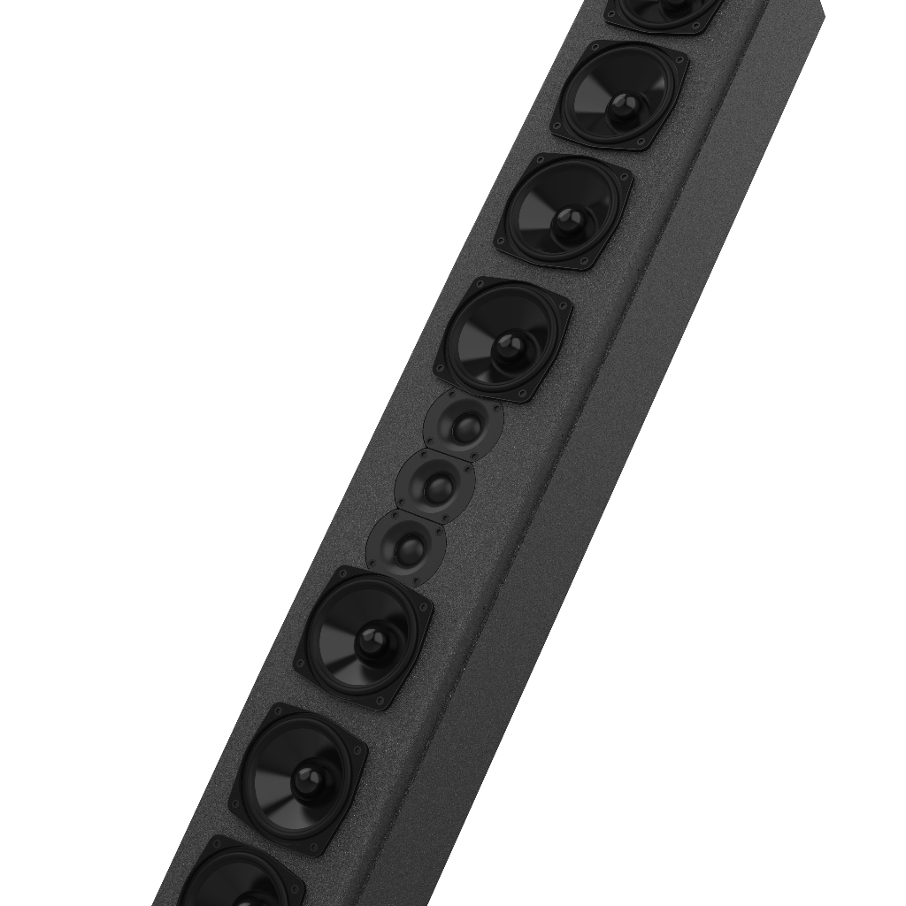 ■LT830音柱系統(tǒng)為經(jīng)典的柱式音箱最新技術(shù)。精準(zhǔn)頻率調(diào)整和全通濾波集成了8X4英寸低音單元和2x25芯高音驅(qū)動器帶恒定波導(dǎo),最大限度地發(fā)揮線源耦合的優(yōu)點,同時消除了干擾.系統(tǒng)保持了良好的垂直覆蓋角度20°到1000赫茲以下。即使在500赫茲的頻率下,垂直模式仍然是80°角度。前面板設(shè)計弧線單元組合,形成曲線源來幫助防止垂直模式干擾的交叉區(qū)域。